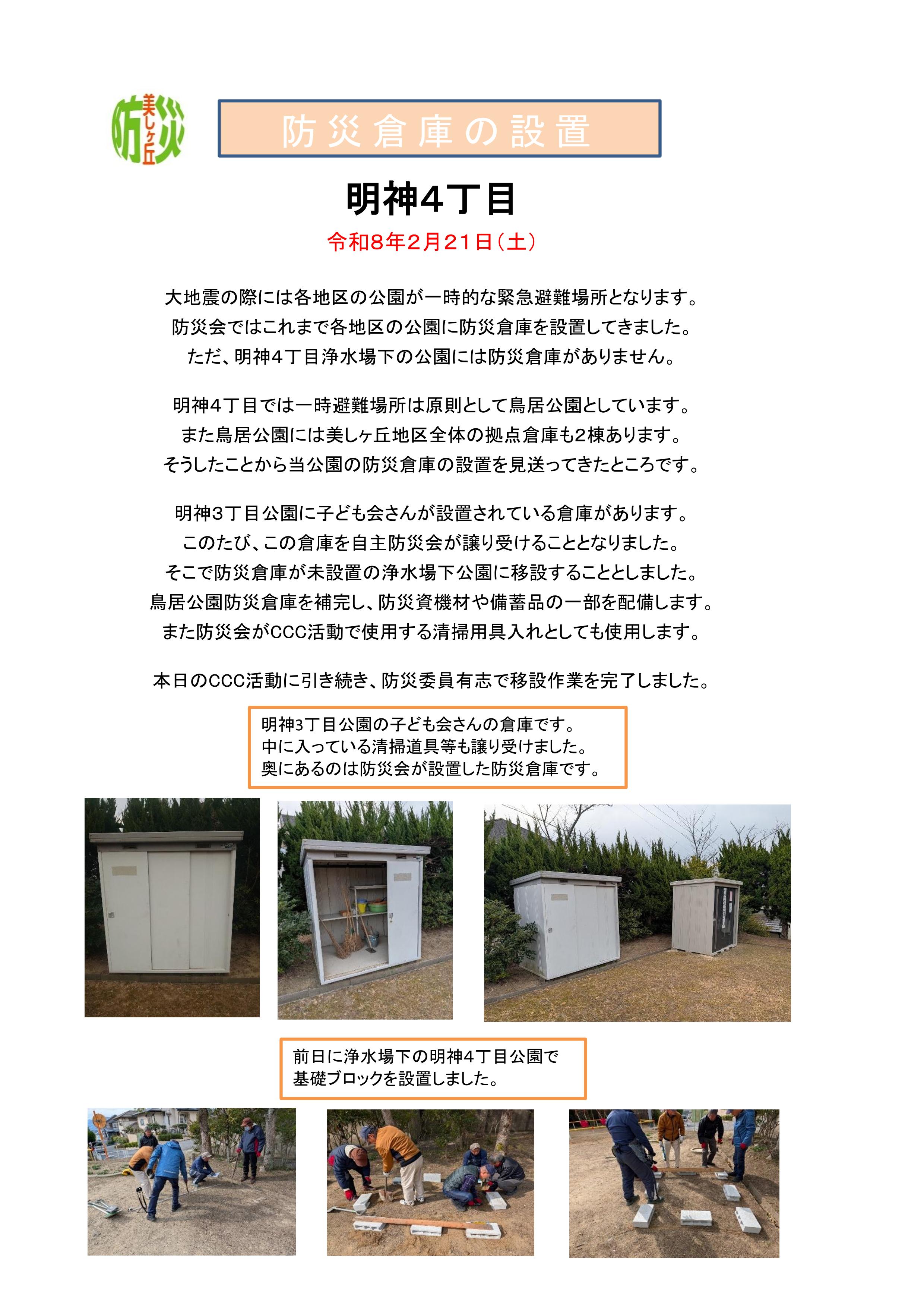 >「防災倉庫の設置 明神4丁目」